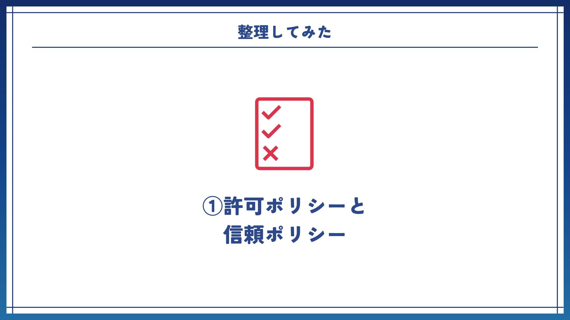 機能の設計と 画面の構成 整理してみた ①許可ポリシーと 信頼ポリシー
