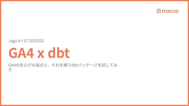GA4 x dbt Jagu'e'r LT 2023/02 GA4の生ログの弱点と、それを補うdbtパッケージを試してみ た