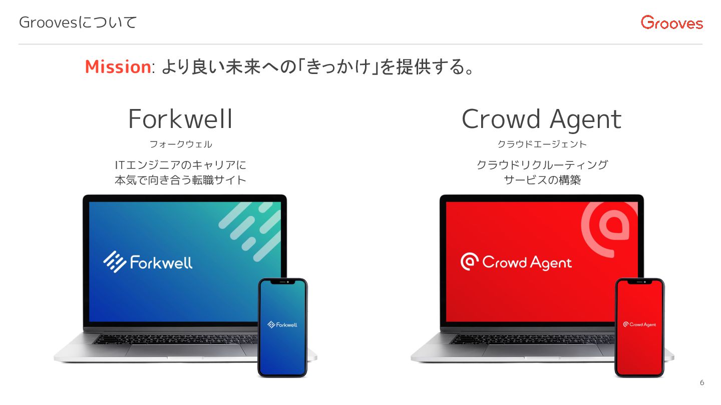 6 Groovesについて ITエンジニアのキャリアに 本気で向き合う転職サイト クラウドリクルーティング サービスの構築 Forkwell フォークウェル Crowd Agent