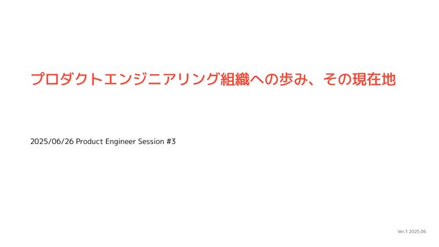 2025/06/26 Product Engineer Session #3 Ver.1 2025.06 プロダクトエンジニアリング組織への歩み、その現在地