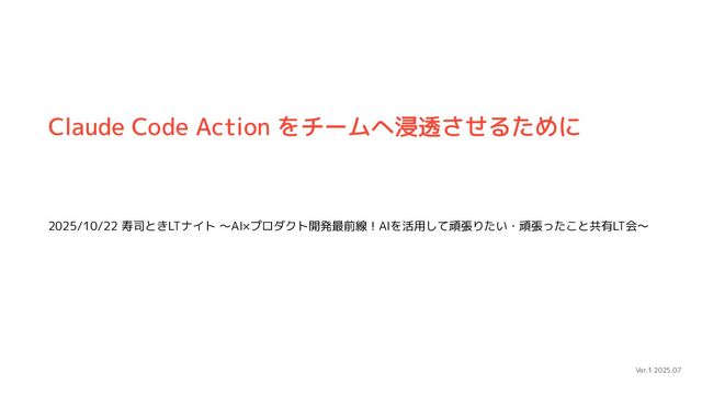 2025/10/22 寿司ときLTナイト ~AI×プロダクト開発最前線!AIを活用して頑張りたい・頑張ったこと共有LT会~ Ver.1 2025.07 Claude Code Action をチームへ浸透させるために