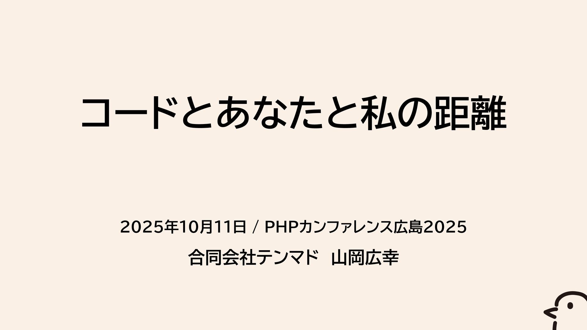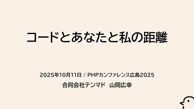 2025年10月11日 / PHPカンファレンス広島2025 合同会社テンマド 山岡広幸 コードとあなたと私の距離