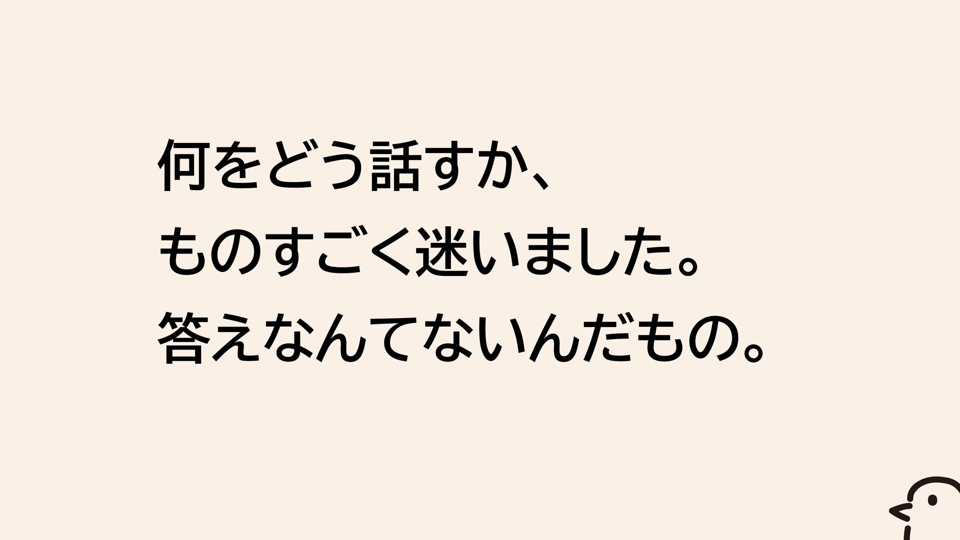 何をどう話すか、 ものすごく迷いました。 答えなんてないんだもの。
