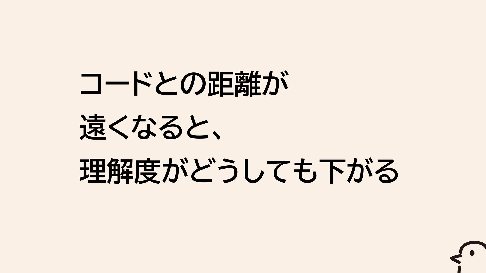 コードとの距離が 遠くなると、 理解度がどうしても下がる