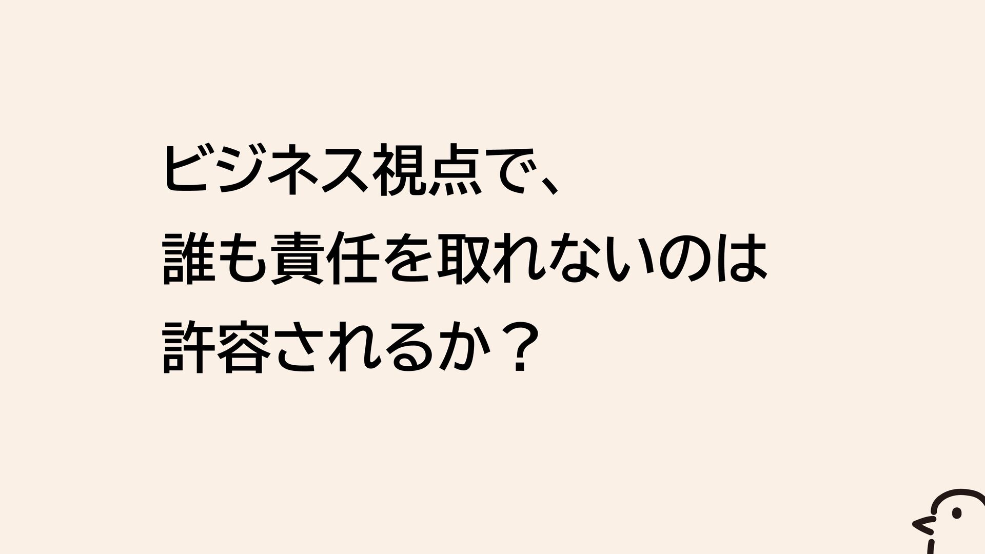 ビジネス視点で、 誰も責任を取れないのは 許容されるか?