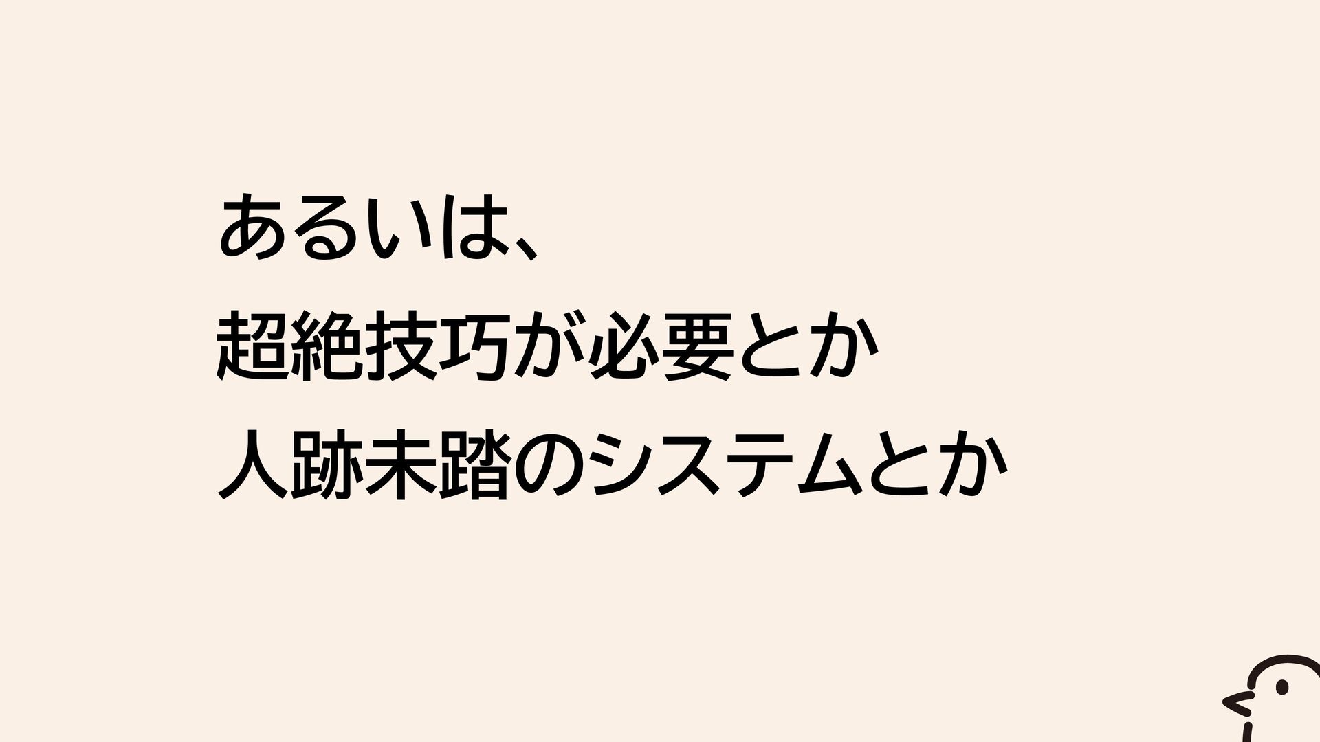 あるいは、 超絶技巧が必要とか 人跡未踏のシステムとか