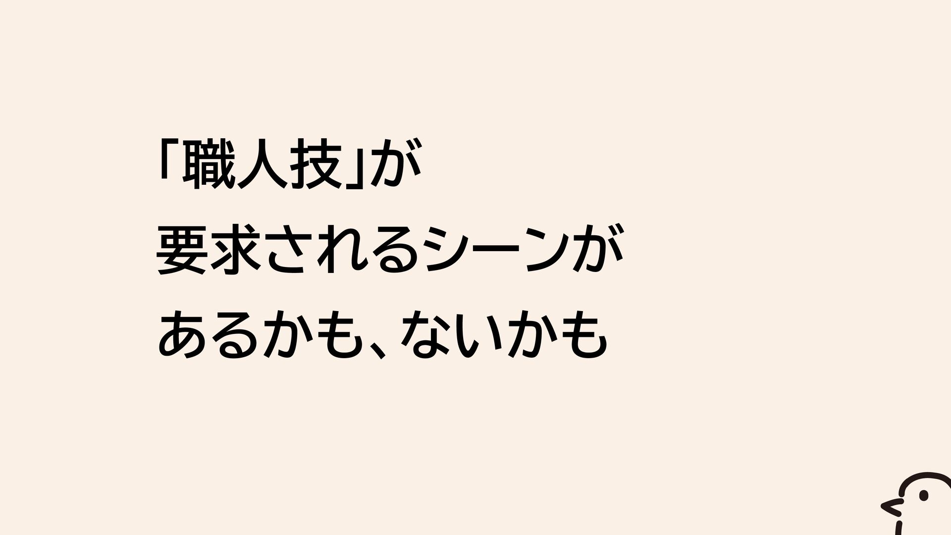 「職人技」が 要求されるシーンが あるかも、ないかも