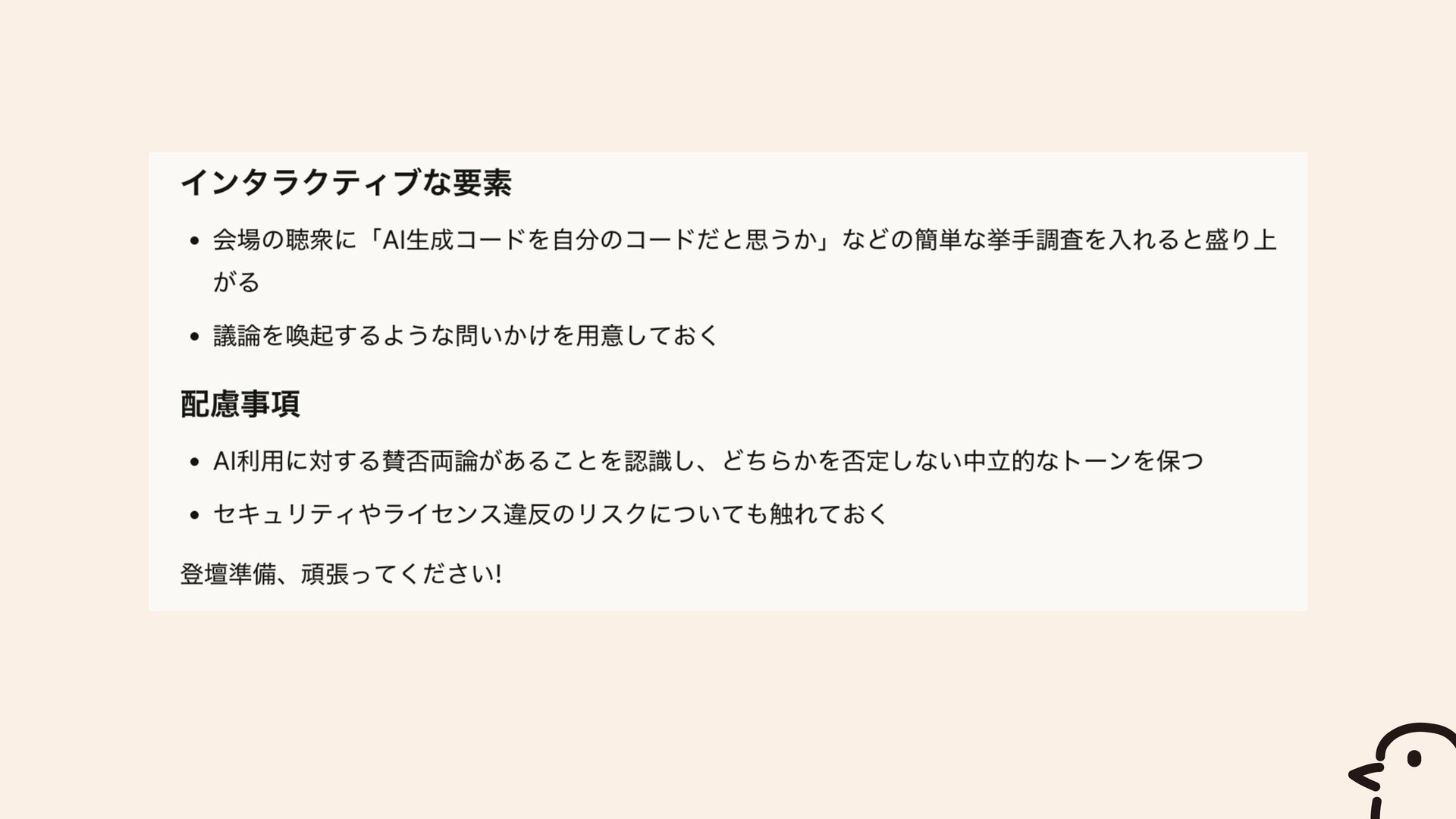 でも待ってほしい。 人間が登壇する意味は?