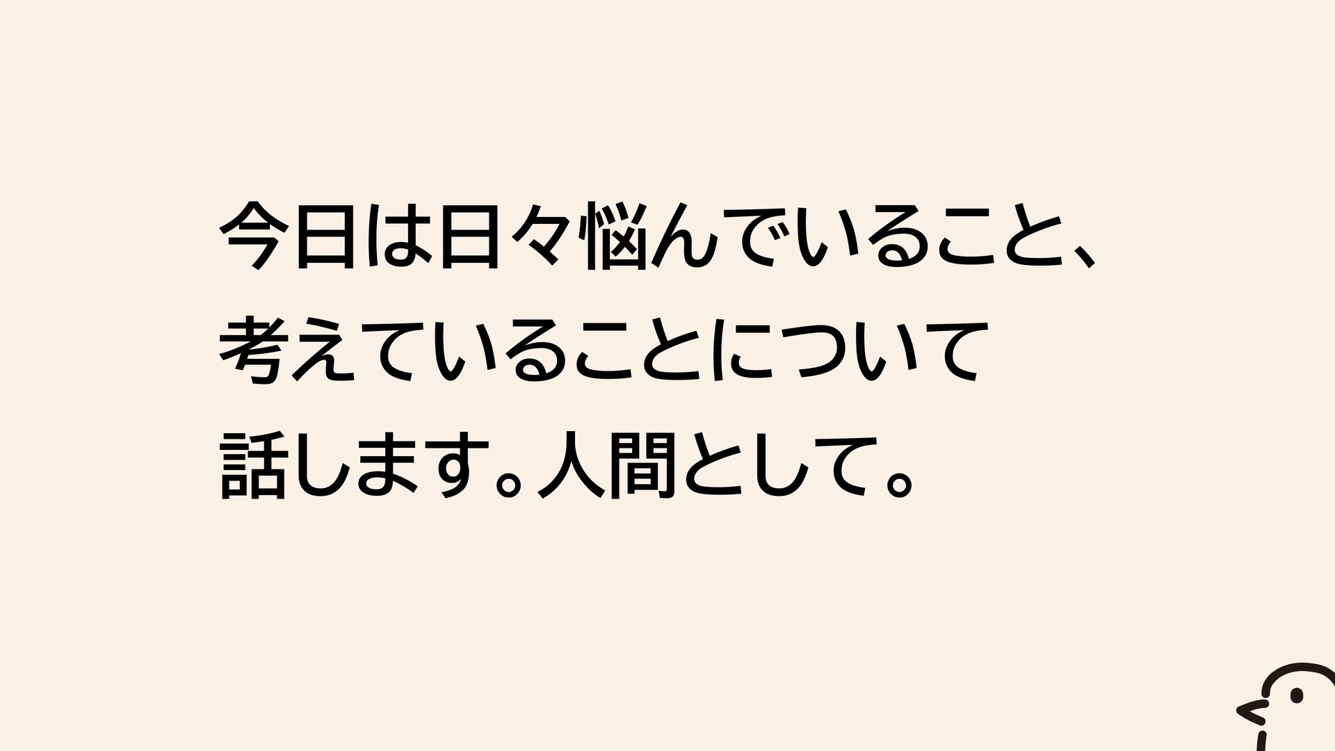 今日は日々悩んでいること、 考えていることについて 話します。人間として。