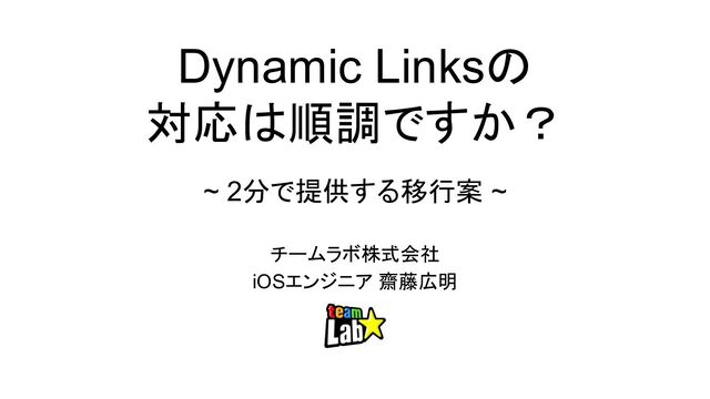 Dynamic Linksの対応に関して2分で移行案を提供させていただきました。 内容は基本的なアプリ起動に関するものですが、今後のインストールリファラーなどを検証する上で必要な検証環境の提案もしています!