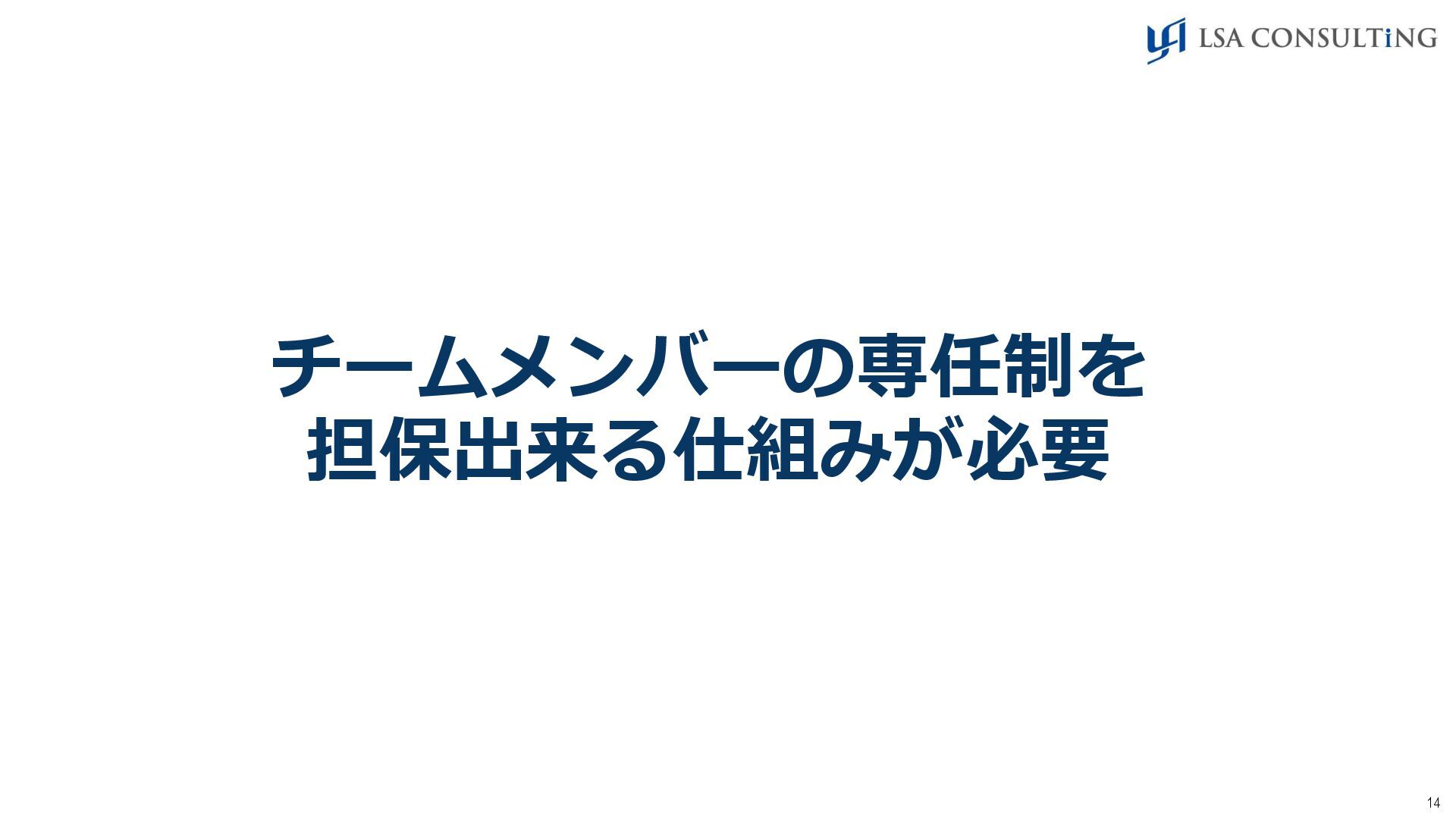 14 チームメンバーの専任制を 担保出来る仕組みが必要