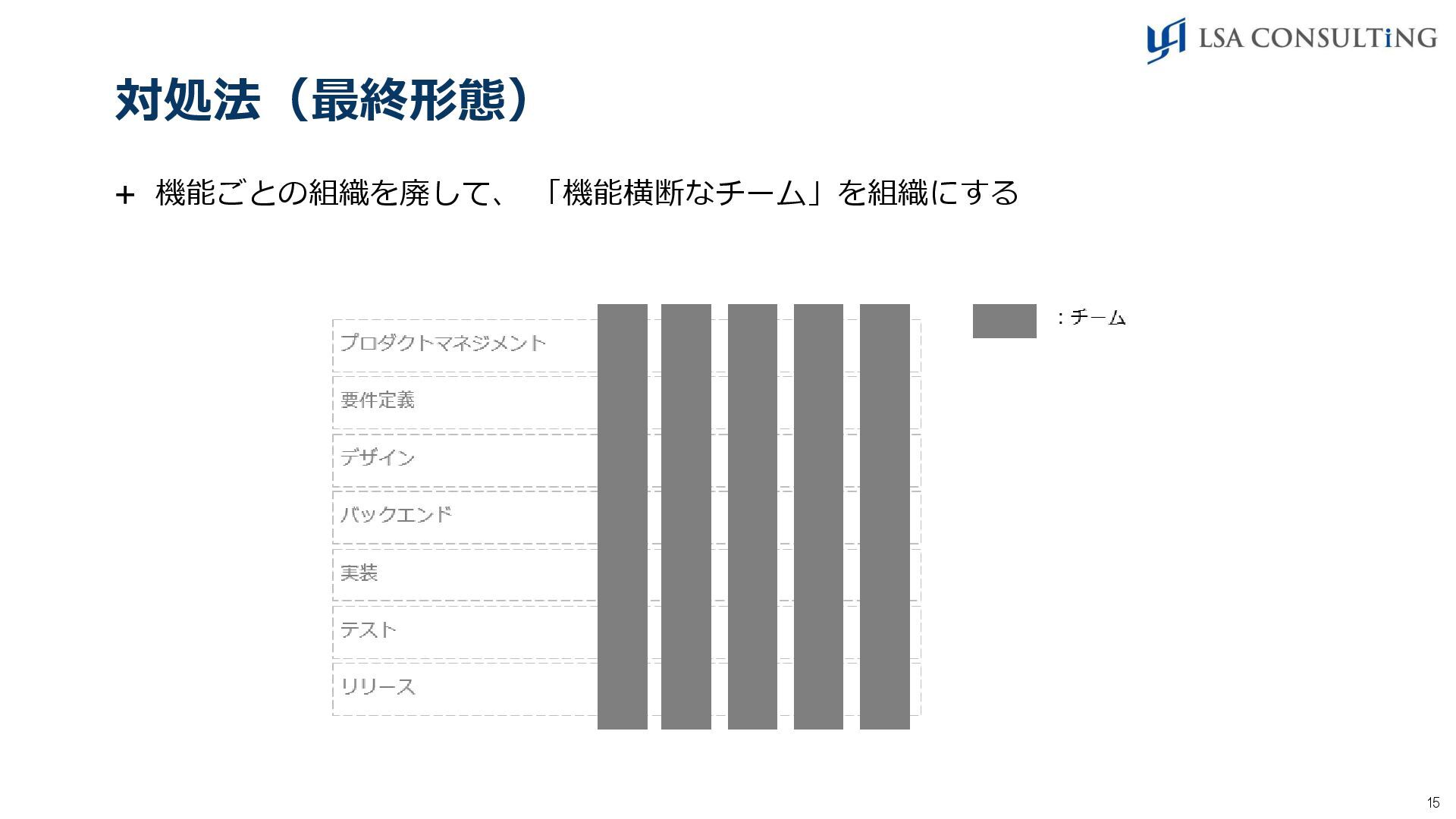 機能ごとの組織を廃して、 「機能横断なチーム」を組織にする 15 対処法(最終形態)