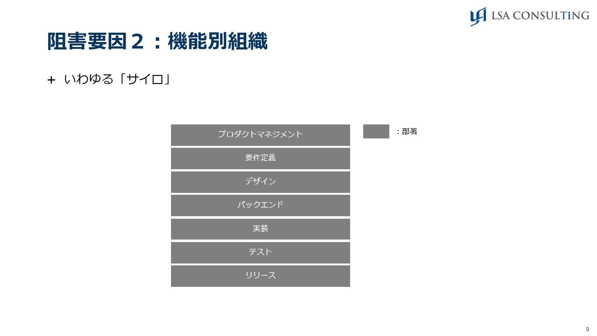 いわゆる「サイロ」 9 阻害要因2:機能別組織