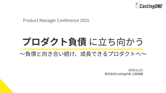 プロダクト負債 に立ち向かう 2025/11/21 株式会社CastingONE 上田裕耀 Product Manager Conference 2025 〜負債と向き合い続け、成長できるプロダクトへ〜