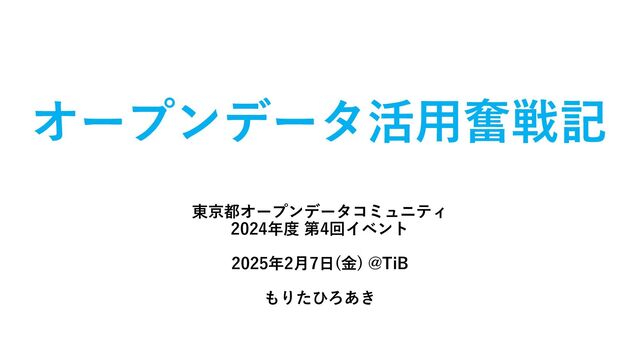 オープンデータ活用奮戦記 東京都オープンデータコミュニティ 2024年度 第4回イベント 2025年2月7日(金) @TiB もりたひろあき