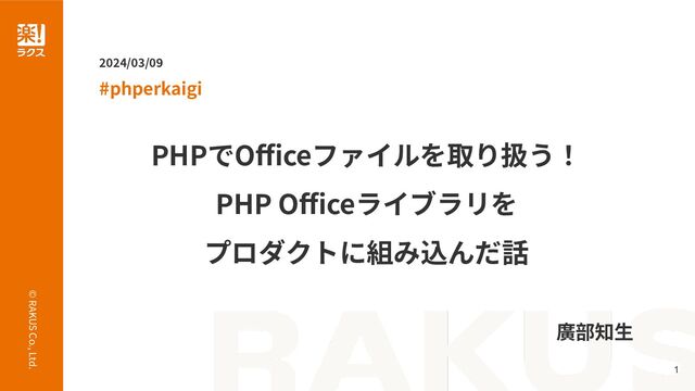 © RAKUS Co., Ltd. 1 PHPでOfficeファイルを取り扱う! PHP Officeライブラリを プロダクトに組み込んだ話 #phperkaigi