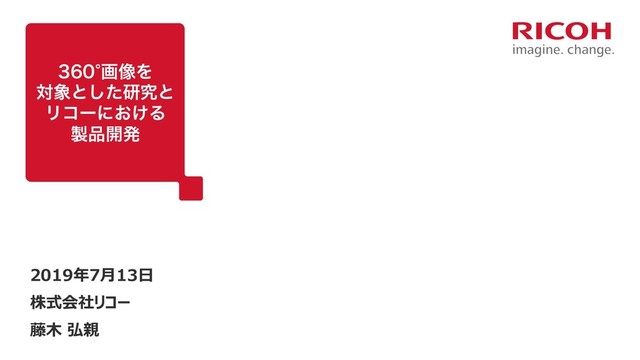 Ricoh Company, Ltd. All Rights Reserved July 13, 2019 ը૾ͷݚڀ ίϯςϯπͷࢹௌ͚ͩͰͳ͘ը૾Λͬͨݚڀ׆ൃ 3PPN-BZPVU&TUJNBUJPO Zou, Chuhang, et al. "Layoutnet: Reconstructing the 3d room layout from a single RGB image." Proceedings of the IEEE Conference on Computer Vision and Pattern Recognition. 2018. $713Ͱෳͷख๏͕ఏҊ͞Ε͓ͯΓ ը૾ʹؔ͢Δ8PSLTIPQ։࠵͞Ε͍ͯΔ • %ը૾͔Βٖࣅతͳ %ίϯςϯπͷ࡞ • ؒऔΓਤͷࣗಈੜ • Ո۩ஔγϛϡϨʔγϣϯ Ԡ༻͕ظ͞ΕΔ ը૾ 3(# ͔Β น໘ͱఱ໘চ໘ͷڥք Λݕग़Ͱ͖Δٕज़