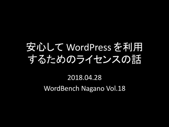 安心して WordPress を利用 するためのライセンスの話 2018.04.28 WordBench Nagano Vol.18