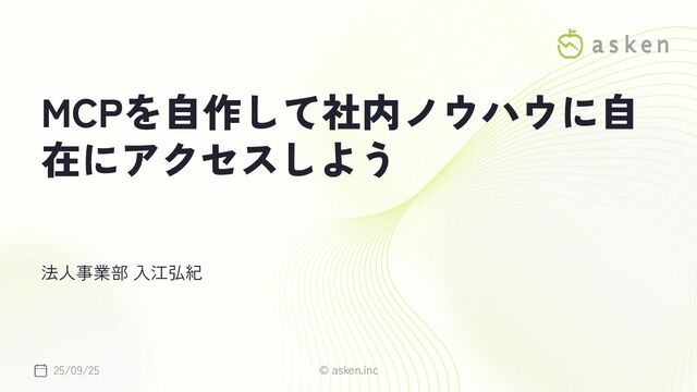 うまく動かない時の切り分けが大変 ◦ MCP InspectorをもちいることでMCPのみ の確認が簡単にできるように 起動方法 npx @modelcontextprotocol/inspector --config config.json --server trac-mcp config.json { "mcpServers": { "trac-mcp": { "command": "/opt/homebrew/bin/uv", "args": [ "--directory", "/Users/hironori.irie/python_proj/mcp-trac", "run", "main.py" ], "env": { "TRAC_URL": "https://example.com/trac/askenportal/login/xmlrpc", "TRAC_USERNAME": "irie-hironori" , "TRAC_PASSWORD": "xxxxxxxxxxx", "TRAC_DESCRIPTION": "あすけん開発に関する仕様がまとめられたTracサーバ" } } } }
