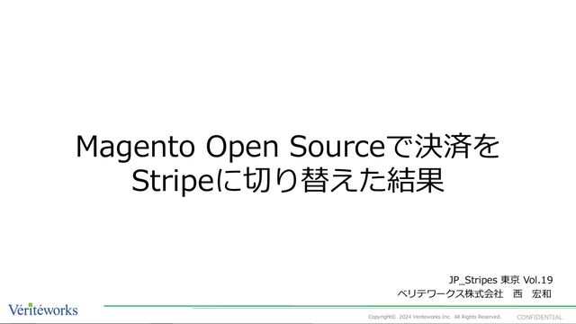 Vol.19 ベリテワークス株式会社 ⻄ 宏和 Magento Open Sourceで決済を Stripeに切り替えた結果