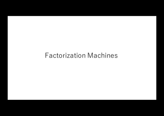 ×n 1 k 1 n w 0 1 n W :1×(n+1) f j k f f i n i n i j j i n i i i v v x x x w w y , 1 , 1 1 1 0 ) ( ˆ ∑ ∑ ∑ ∑ = = + = = + + = Χ バイアス 特徴量 重み 特徴量同⼠ の相関関係 training data 各パラメータ A B C x y z 特徴量 ユーザー アイテム