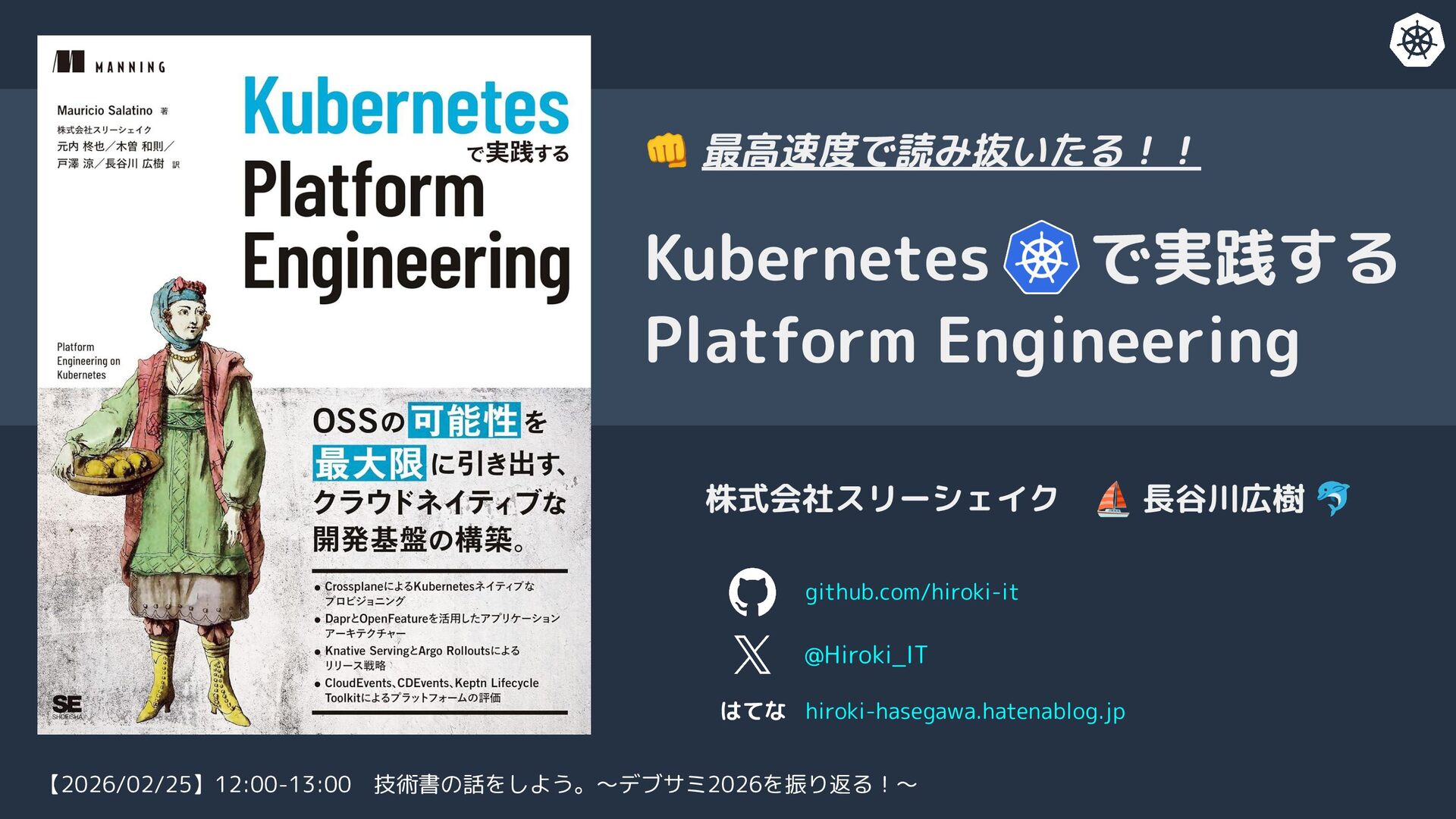 Helm, Karpenter, Ansible, Packer, …) ・CICD(GitHub Actions, GitLabCI, ArgoCD) ・クラウドインフラストラクチャ(AWS) ・オブザーバビリティー(Fluentd, Prometheus, OpenTelemetry, VictoriaMetrics, …) ・アプリケーションの主にバックエンド(レイヤード/オニオンアーキテクチャ, マイクロサービス, Go/PHP/TypeScript, …) 推したち ・サービスメッシュ ・マイクロサービスアーキテクチャ ・ドメイン駆動設計 ⛵ 長谷川広樹 🐬 リードSRE/SWE (Platform, Enabling, Embedded) ⇩ 推しについて書きました