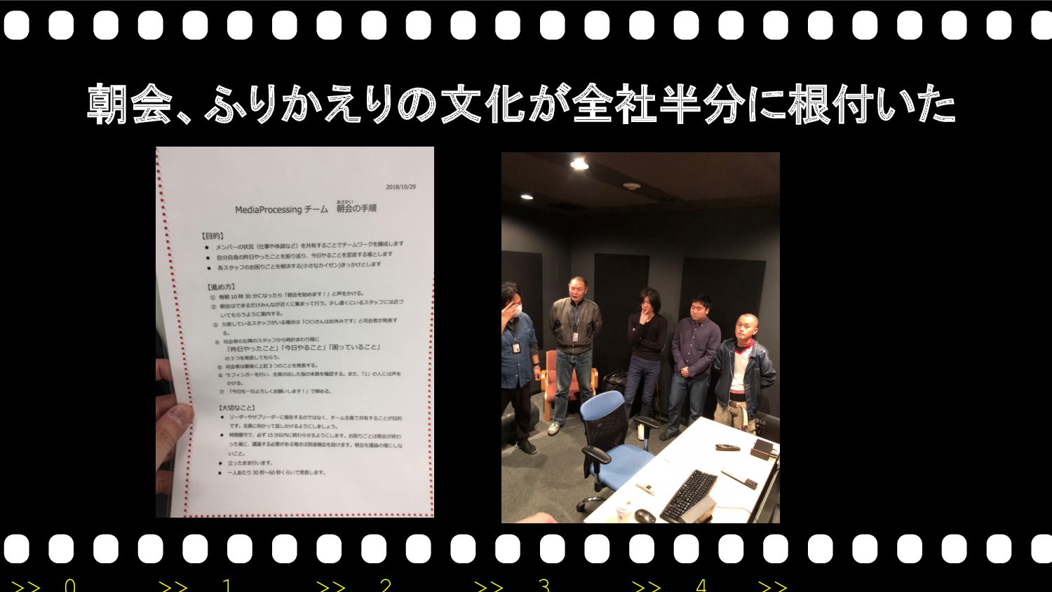 朝会、ふりかえりの文化が全社半分に根付いた