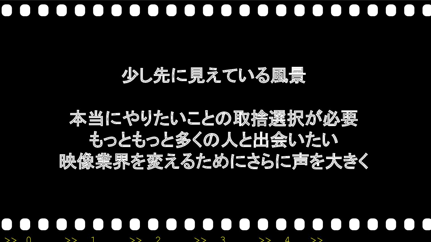 少し先に見えている風景 本当にやりたいことの取捨選択が必要 もっともっと多くの人と出会いたい 映像業界を変えるためにさらに声を大きく