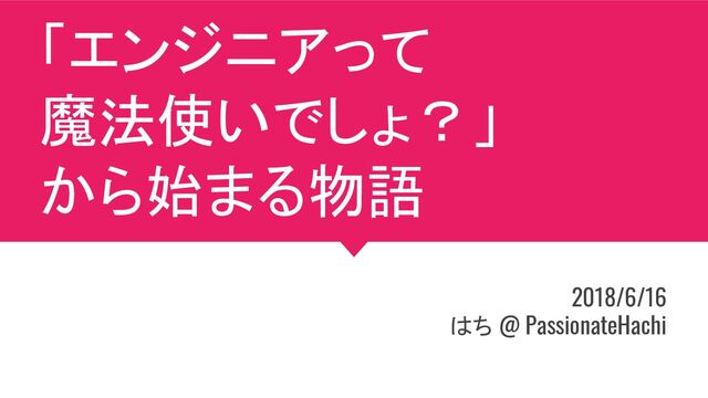 「エンジニアって 魔法使いでしょ?」 から始まる物語 2018/6/16 はち @ PassionateHachi
