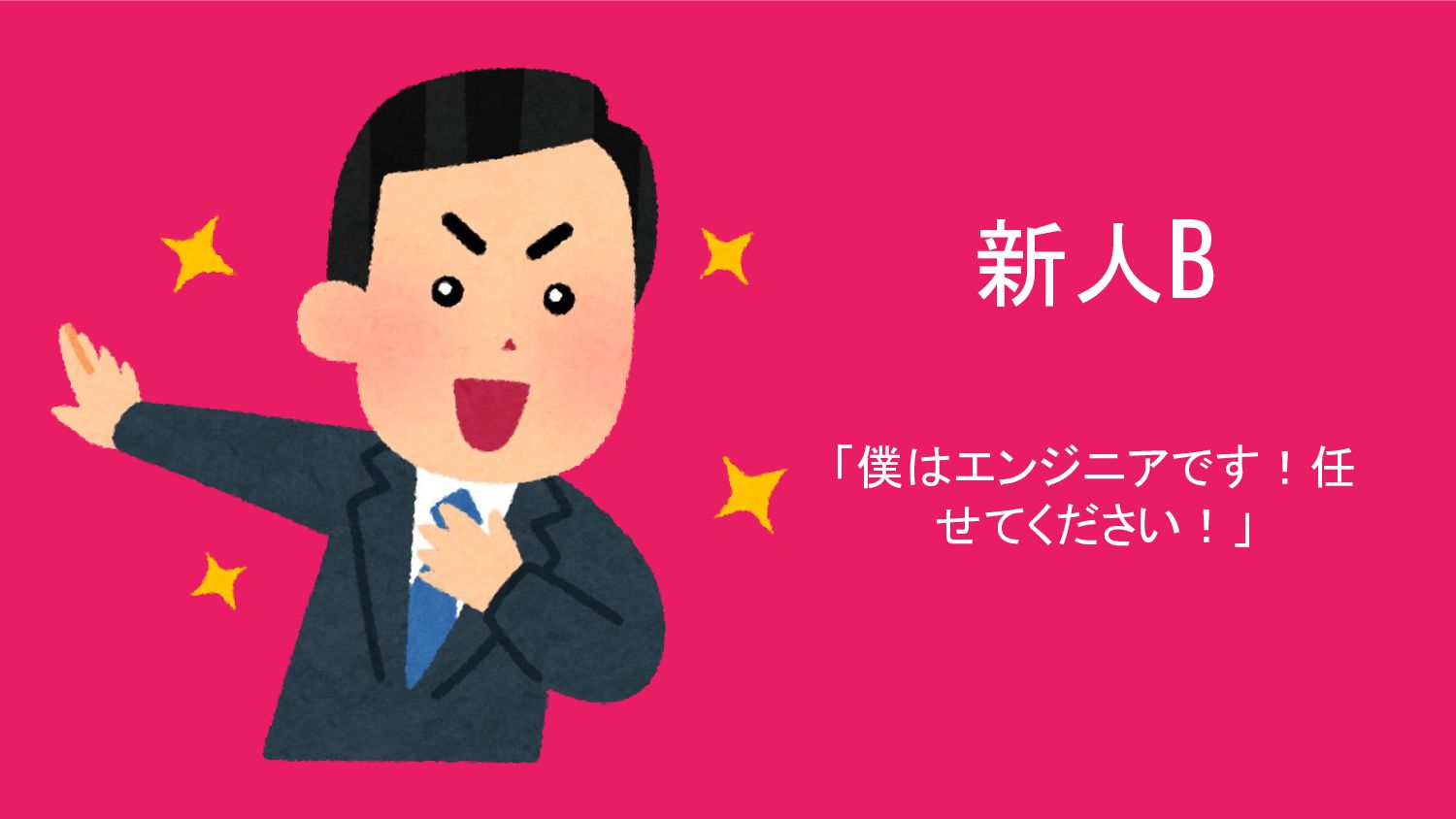新人B 「僕はエンジニアです!任 せてください!」