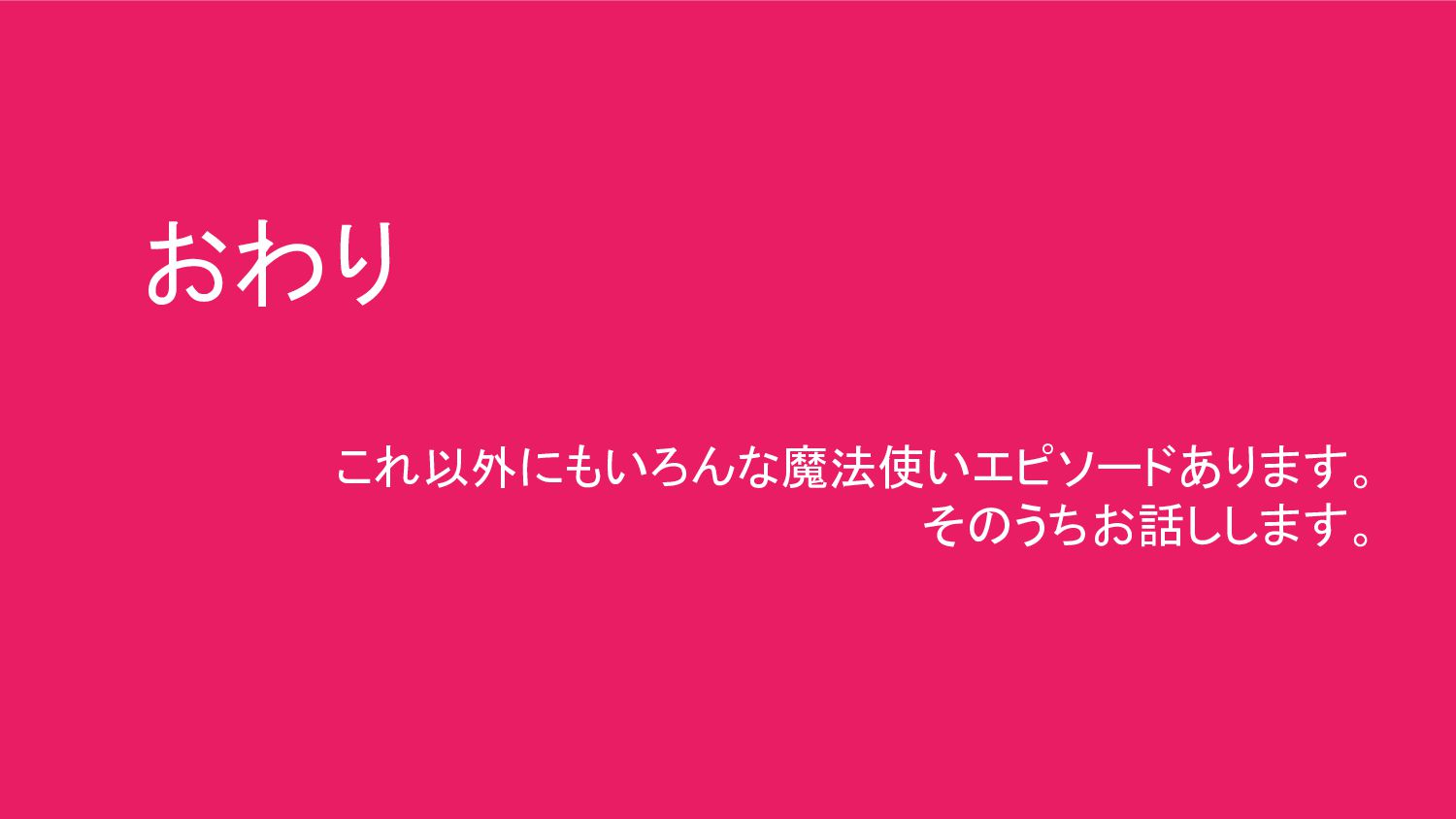おわり これ以外にもいろんな魔法使いエピソードあります。 そのうちお話しします。