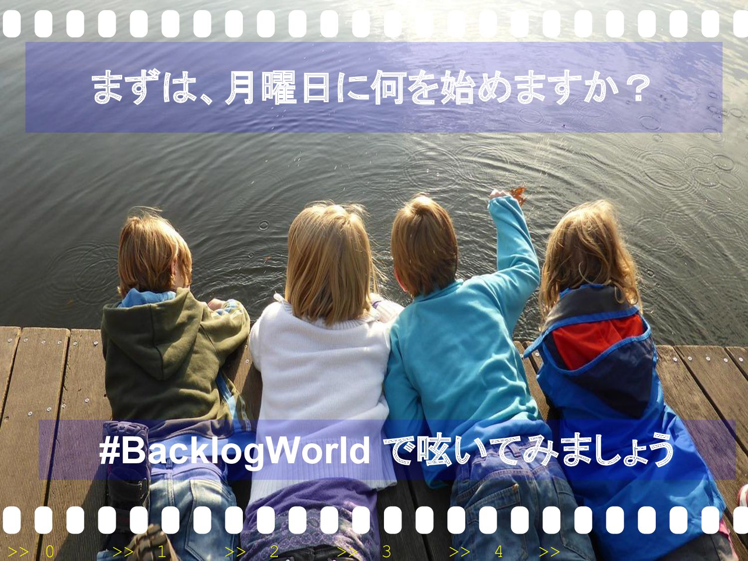 >> まずは、月曜日に何を始めますか? #BacklogWorld で呟いてみましょう