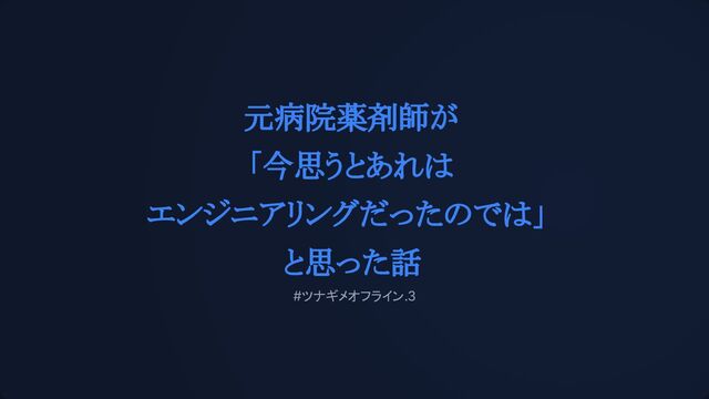 元病院薬剤師が 「今思うとあれは エンジニアリングだったのでは」 と思った話 #ツナギメオフライン.3