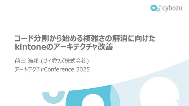 コード分割から始める複雑さの解消に向けた kintoneのアーキテクチャ改善 前田 浩邦 (サイボウズ株式会社) アーキテクチャConference 2025 1