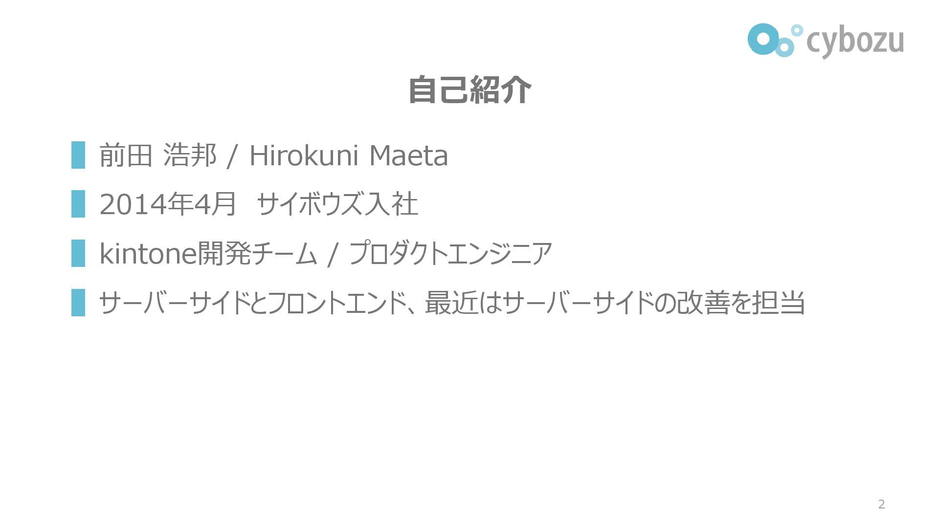 自己紹介 ▌前田 浩邦 / Hirokuni Maeta ▌2014年4月 サイボウズ入社 ▌kintone開発チーム /