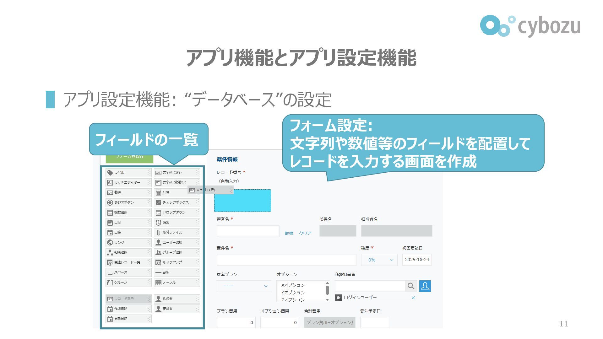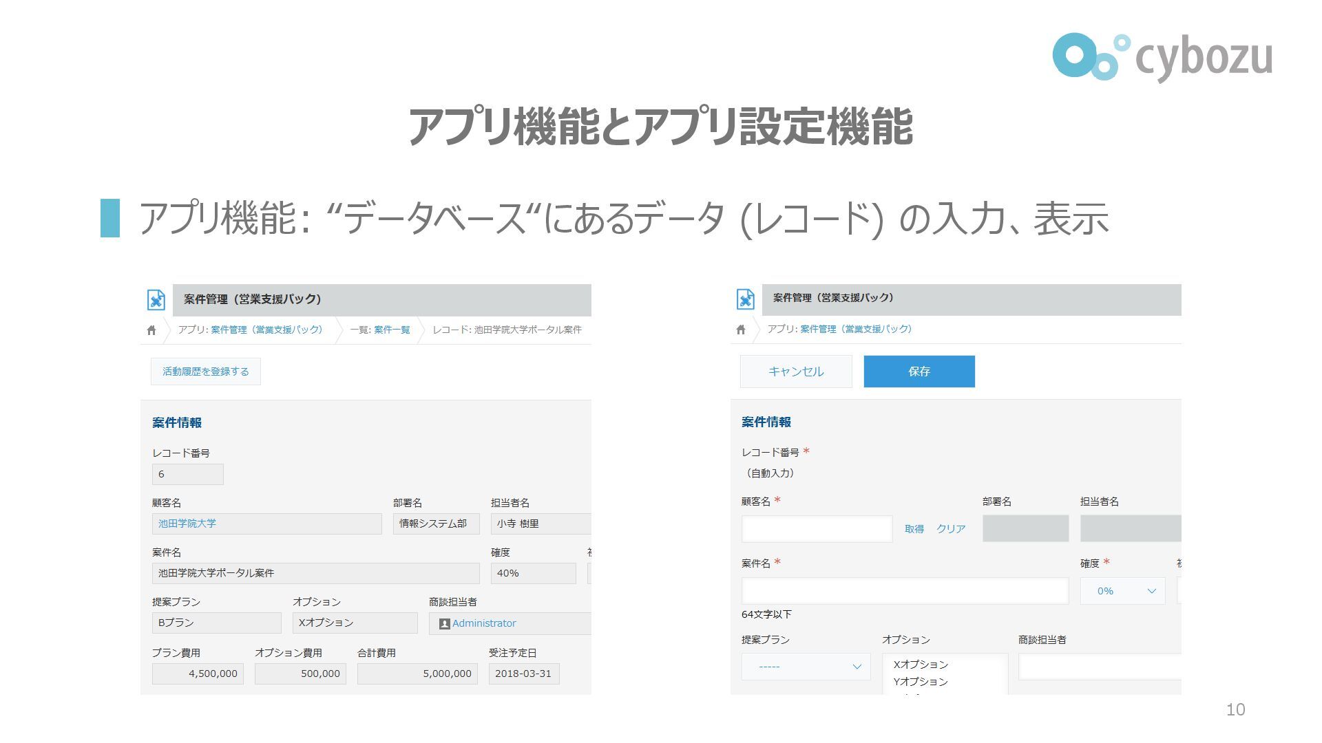 アプリ機能とアプリ設定機能 ▌アプリ機能: “データベース“にあるデータ (レコード) の入力、表示 10