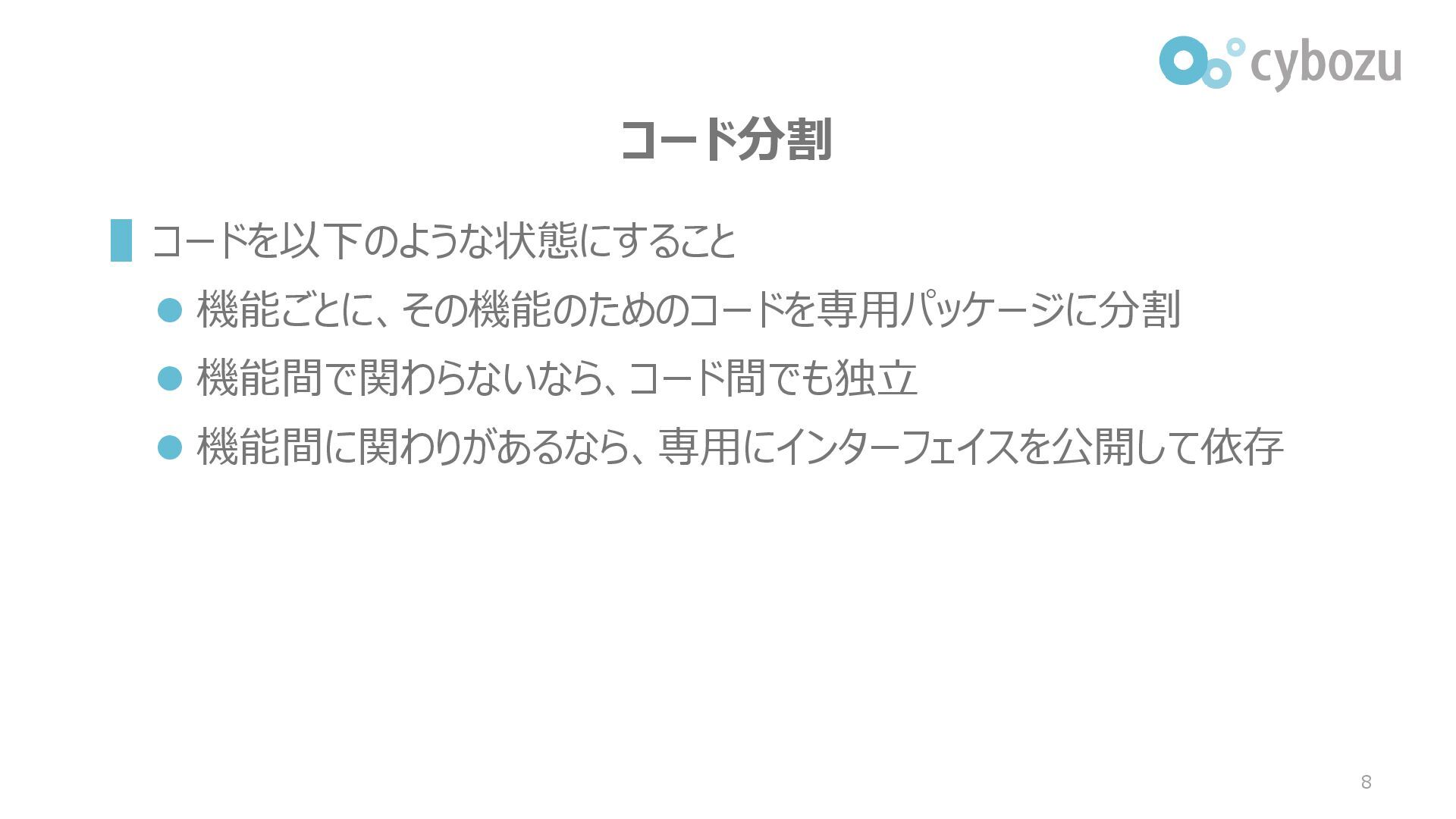 このようなリファクタリングを、あと何回やればいいのか? ▌抜本的な改善として、コード分割という取り組みを開始 7