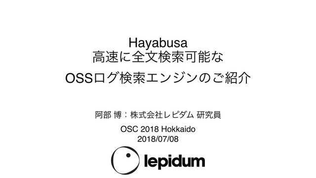 Hayabusa ߴʹશจݕࡧՄೳͳ OSSϩάݕࡧΤϯδϯͷ͝հ Ѩ෦ തɿגࣜձࣾϨϐμϜ ݚڀһ OSC 2018 Hokkaido 2018/07/08