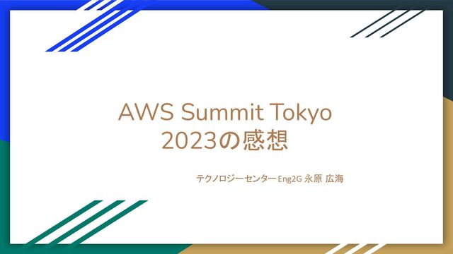 AWS Summit Tokyo 2023の感想 テクノロジーセンターEng2G 永原 広海