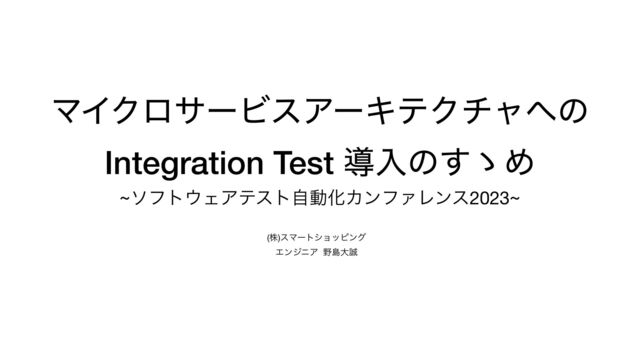 ϚΠΫϩαʔϏεΞʔΩςΫνϟͷ Integration Test ಋೖͷ͢ʍΊ ~ιϑτΣΞςετࣗಈԽΧϯϑΝϨϯε2023~ (ג)εϚʔτγϣοϐϯά ΤϯδχΞ ౡେ