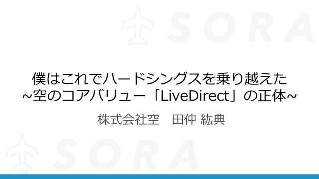 僕はこれでハードシングスを乗り越えた ~空のコアバリュー「LiveDirect」の正体~ 株式会社空 ⽥仲 紘典