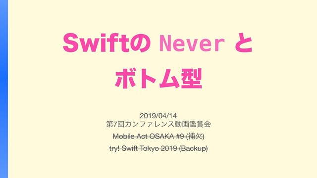 to Equatable and Hashable https://forums.swift.org/t/se-0215-conform-never-to-equatable-and-hashable/13586 • SE-0102: Remove @noreturn attribute and introduce an empty Never type https://github.com/apple/swift-evolution/blob/master/proposals/0102-noreturn-bottom- type.md • [Pitch] Never as a bottom type https://forums.swift.org/t/pitch-never-as-a-bottom-type/5920