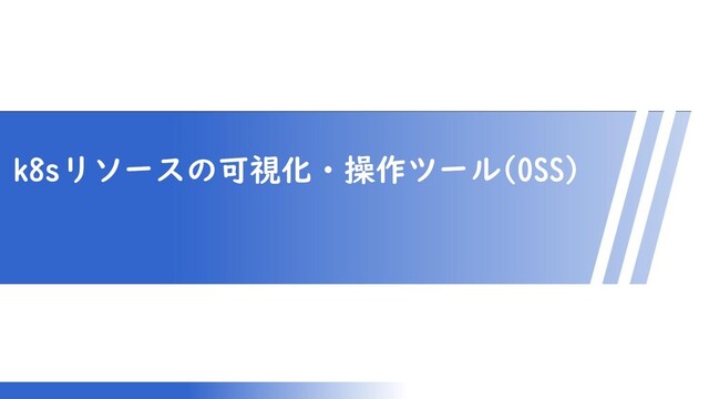 Web based UI tool Desktop/Client application The Kubernetes IDE Github kubernetes/dashboard vmware-tanzu/octant lensapp/lens Initial release V0.1.0 (Feb 4,2016) V0.1.0 (Nov 20,2018) V2.70 (Dec 3,2019) Star 8.3k 4.3k 7.3k Fork 2.4k 288 344 Contributors 246 44 26 Issues 89 169 254 commits 3,234 2,374 175 Authentication Token(一時認証) or Kubeconfig(Webアクセス時に 指定) Kubeconfig(OCTANTプロセス起 動時に読み込み) Kubeconfig(Lensプロセス起動 後のメニューで指定) 2020年8月12日時点 ↑ ・2020年3月にOSS公開 ・2020年8月13日にMirantisが取得(買収) ↑ ? Githubで遡れるバージョン