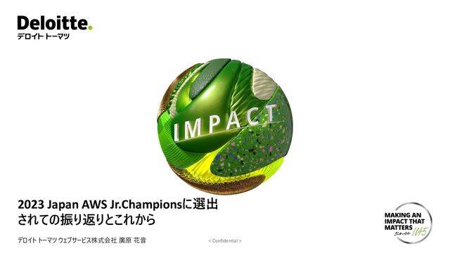 廣原 花⾳(ひろはら かのん) デロイト トーマツ ウェブサービス株式会社 l エンジニア l 2023 Japan AWS Jr.Champions l 好きなAWSサービス: AWS Control Tower