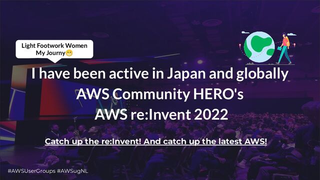 Group Leader Lightning Talks • 2019:Participation in the AWS re:Invent Community Leader Diversity Grant programme • 2020:Participation online using Oculus • 2021:Participation in the AWS Hero programme • 2022:Participation in the AWS Hero programme