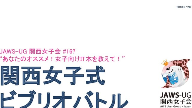 JAWS-UG 関西女子会 #16? “あなたのオススメ!女子向けIT本を教えて!” 関西女子式 2018.07.28 1