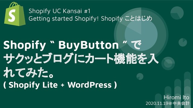 Shopify UC Kansai #1「Getting started Shopify! Shopify ことはじめ」で紹介したスライドです。 “Shopify “ BuyButton ” で サクッとブログにカート機能を入れてみた。 ( Shopify Lite + WordPress )”