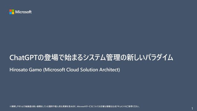 構築など経験し、現在はAI/MLシステム開発の技術支援に従事。 HIROSATO GAMO Microsoft Japan Co., Ltd. Cloud Solution Architect (Data & AI) About me 『ChatGPTによって描かれる未来とAI開発の変遷』webセミナー|IT勉強会・イベントならTECH PLAY[テックプレイ] 20230421_DS協会のChatGPTセミナーが凄かった件(大城、正式版、4/23、4/24更新)|ChatGPT部 Produced by NOB DATA (note.com) ご質問は下記ハッシュタグで #thxシス管 #sysadminday