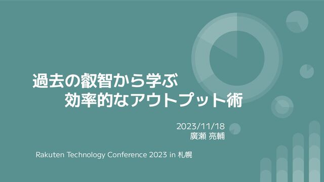過去の叡智から学ぶ 効率的なアウトプット術 2023/11/18 廣瀬 亮輔 Rakuten Technology Conference 2023 in