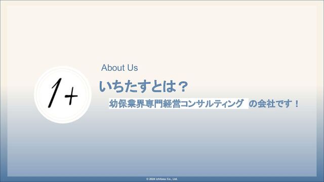 いちたすとは? 幼保業界専門経営コンサルティング の会社です! About Us © 2024 ichitasu Co., Ltd.